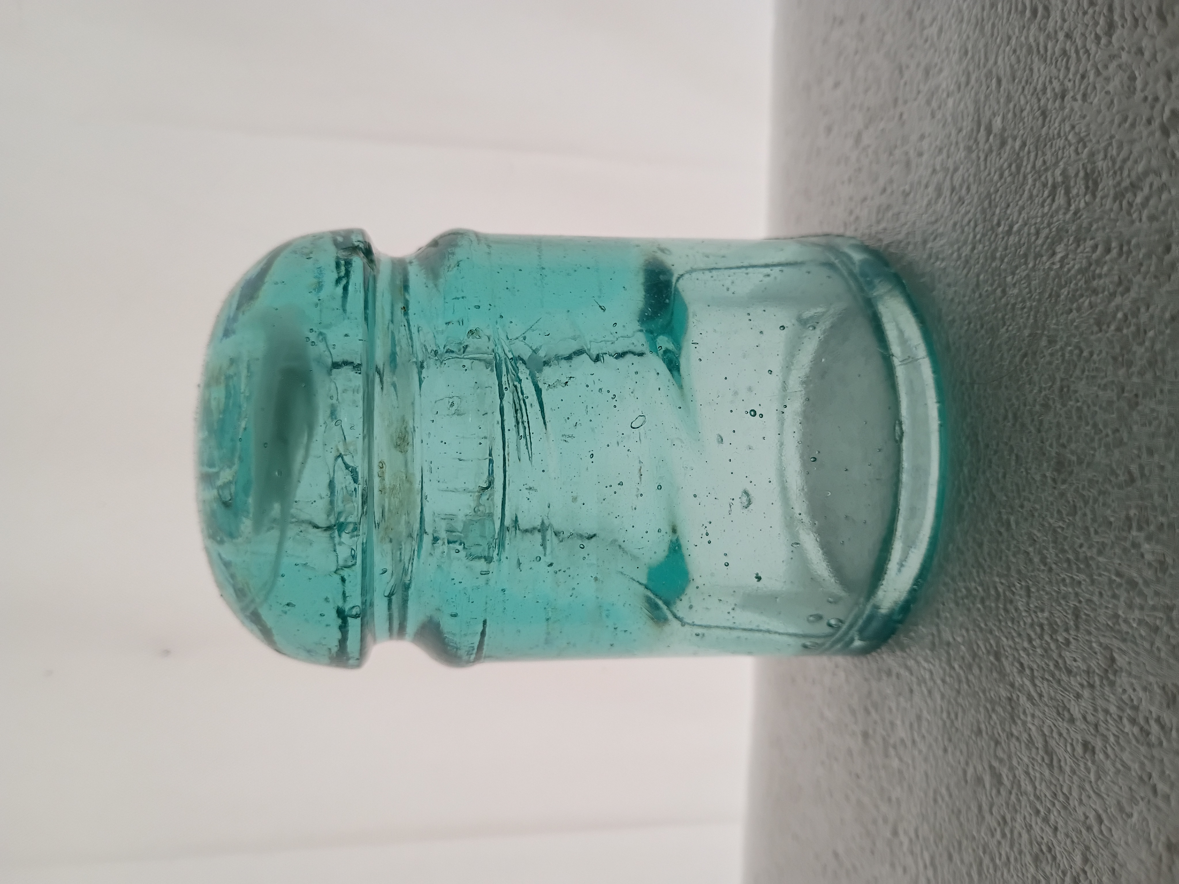 Here's a cool old piece. Supershort mold, no embossing. Nice swath of milk in dome. Great shape with just one bb ding with tiny flake on upper ridge. Asking 60, plus 8 S&H