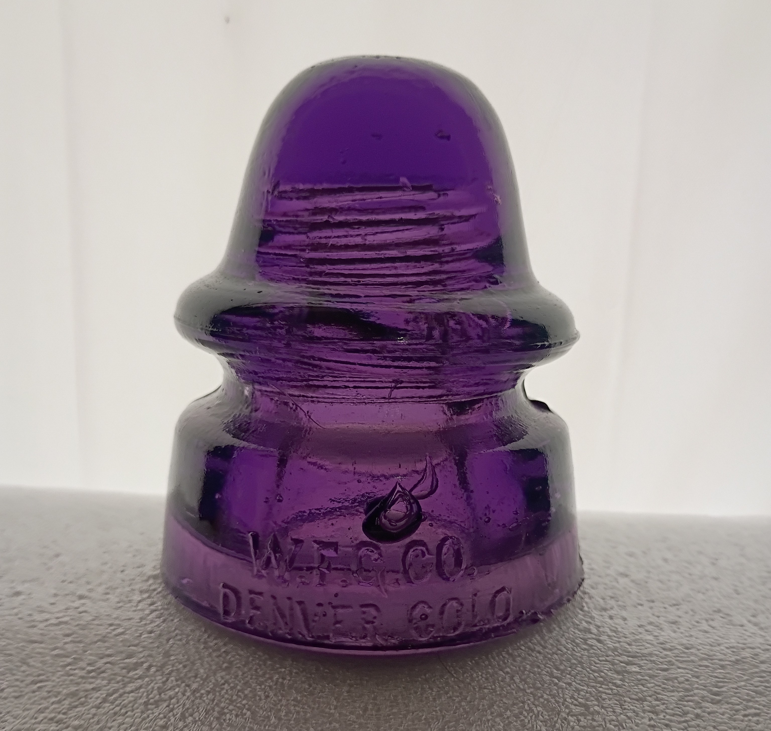 Great shape WFG CD 162 here in purple. just a bb ding on the dome. Inner skirt is crude with glass filled in between it and skirt, making it very heavy. Asking 115, plus 8 S&H