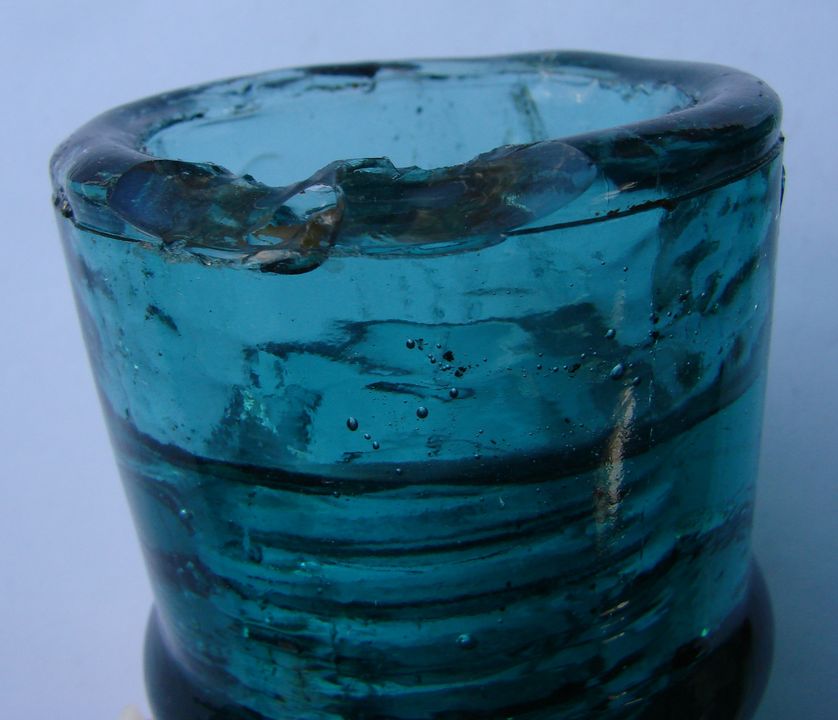 Open bubble / base flake. Color is a more Dark Tealy Green Aqua in person.