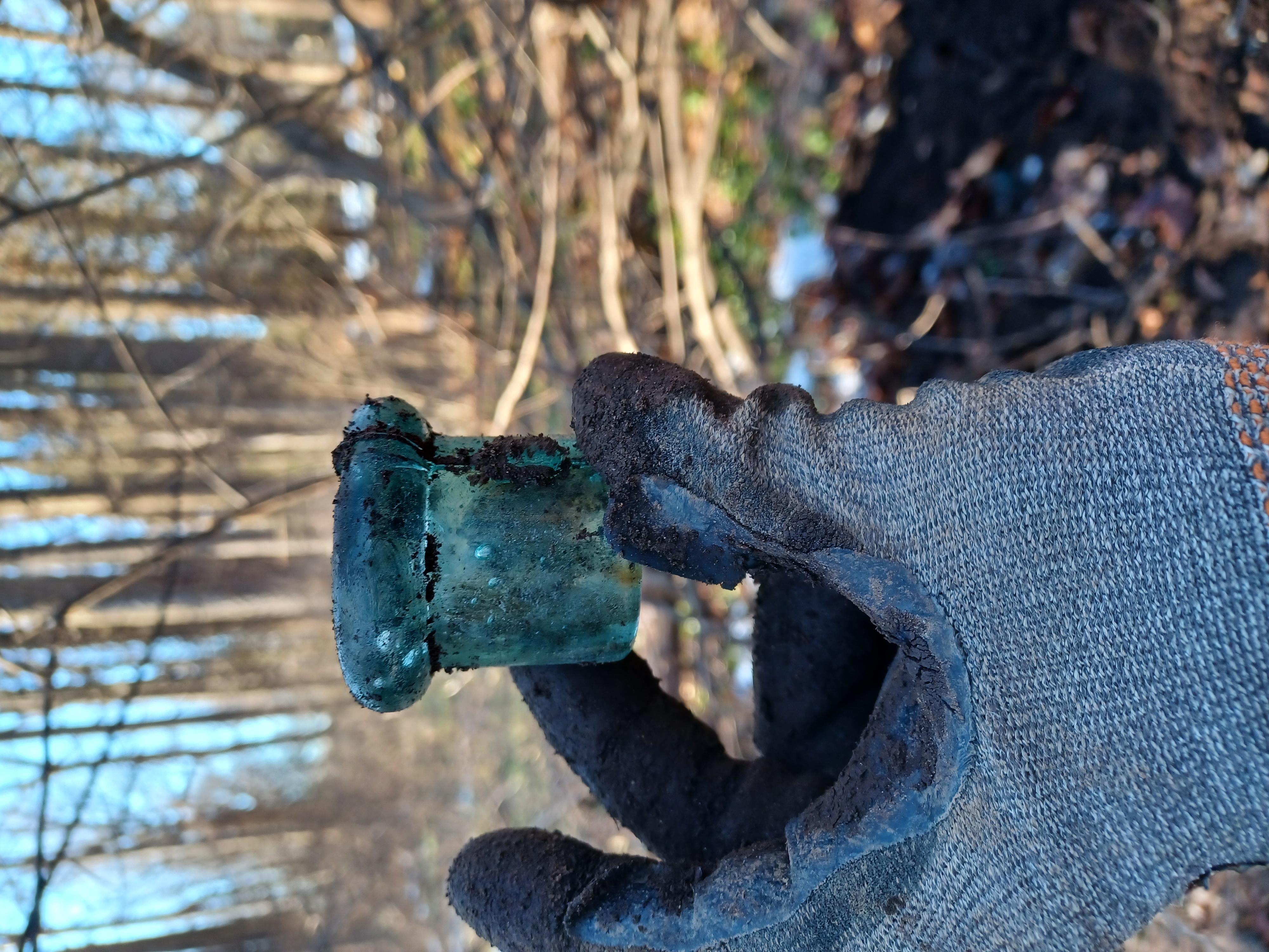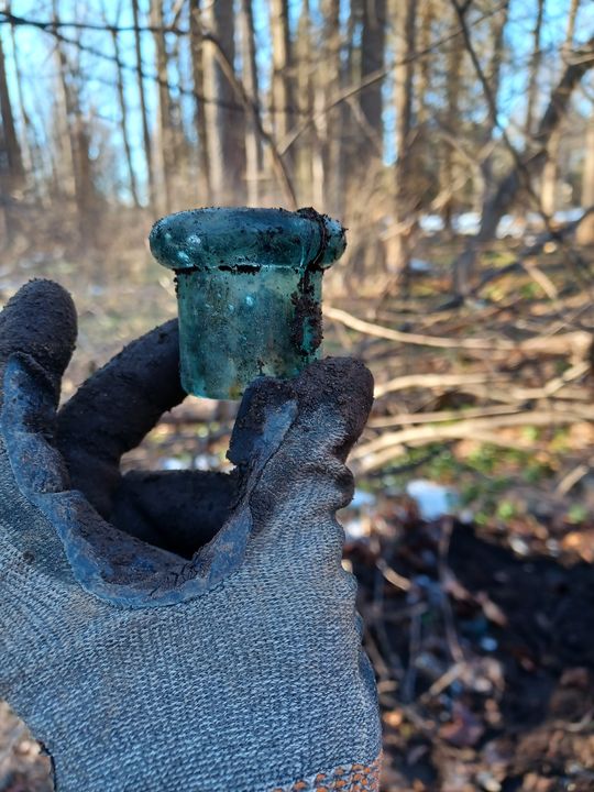 These aqua side tabs are probably common. I'm just happy it's not broken. Don't see any embossing on it. I'd guess late 1800s to early 1900s give the stuff it was in with in the pit. Any experts want to weigh in?