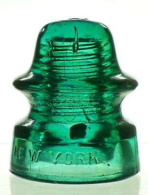 CD 164 BROOKFIELD distribution insulator Front skirt embossed: BROOKFIELD Rear skirt embossed: NEW YORK . Top of dome: a backward 5 Smooth base Greenish aqua with some amber streaks Vnm overall 1/2" ROCK IN THE BACK !!!! Stock #a2737 $10.00 + shipping |