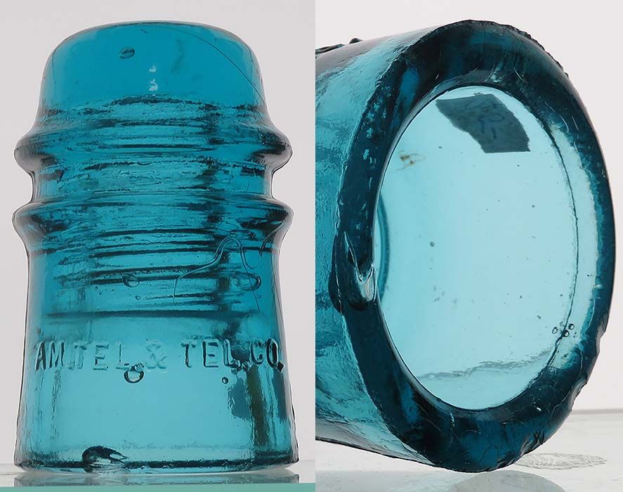 CD 121 AM.TEL.& TEL.CO. - smooth base, hemingray blue, 5-6 tiny flakes around the base (see pic) -- the embossing is CO.and I only see Co. listed as a bonus. $25 plus actual postage. NOTE: I'm selling these insulators on behalf of the Jim Fielding estate -- PayPal (no fee friends and family) or checks are both accepted - I'll provide instructions. I'll also be handling all the packing and mailing. |