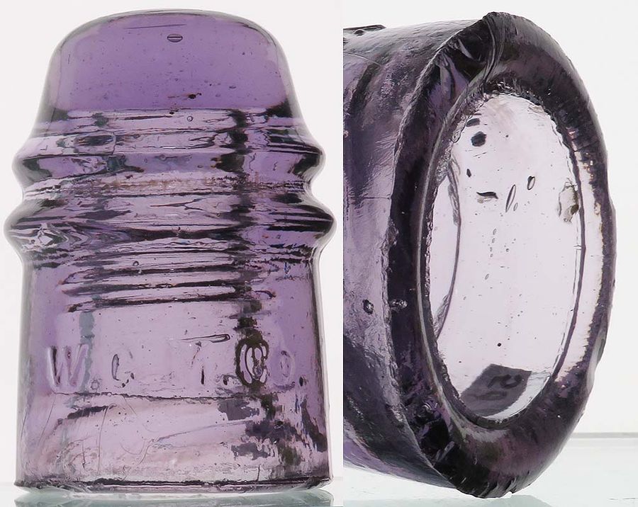 CD 121 W.G.M. Co. in great lighter purple -- 4-5 small flat base flakes (see pic) -- $45 NOTE: I'm selling these insulators on behalf of the Jim Fielding estate -- PayPal (no fee friends and family) or checks are both accepted - I'll provide instructions. I'll also be handling all the packing and mailing. |