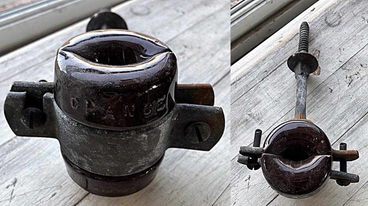 I came across this streetlight duplex insulator in a auction a while back. What makes it unique is that it's made for A.B., Chance Co. and it's embossed!. Chance usually marked their insulators with an underglaze marking continued from their purchase of Porcelain Products Inc. in 1959. This piece I belive was made at the Carrey plant where P.P. Inc. still made dry processed and embossed standard porcelain spools, nail knobs etc. P.P. Inc. was a subsidary of A.B. Chance company for several years before they became wholly owned by Chance. I've only come across a few companies that made these split spool versions with Line Material Co. and Hubbard & Co. being the most. A really neat piece. |