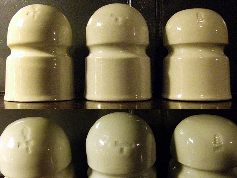 These three beehives were made in Germany but exported to Canada. The first two are U-1136 first one marked with three triangles S /JS20/ !, the second marked Hescho S. I also have a No Name U-1136. The third piece I think is a U-1351. It is marked with three triangles 296. Besides the British Bullers and Gisborne Pattern beehives I have, I don't think there were too many importers to Canada after Canadian Porcelain Insulator Company came along. But I could always be wrong. Either way they are all great pieces and great insulator friends to boot. Hope you enjoyed these posts. Take care stay safe and be well to all. |