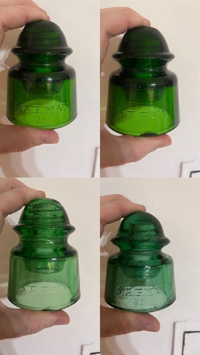 Hi everyone! This time I'm offering a small group of CD 502 insulators from Uruguay, all embossed SAFNV. Condition details: The lightest green example has a BB-sized ping on one side, but it still displays very nicely. The second light green has one small chip on the top groove, nothing major. The two deep 7-Up green pieces are both in good condition. If you'd like more pictures or a video, feel free to contact me. The price reflects the condition, and you can take the four pieces for $160 shipped. Shipping from Argentina is usually around $50, and delivery typically takes 4–5 business days via DHL. Remote areas may have an additional shipping cost. As a small bonus, I'll include a 100-peso bill in the package for those who also enjoy collecting banknotes or coins. Payment via PayPal G&S only (no worries, I'll cover the fees). |