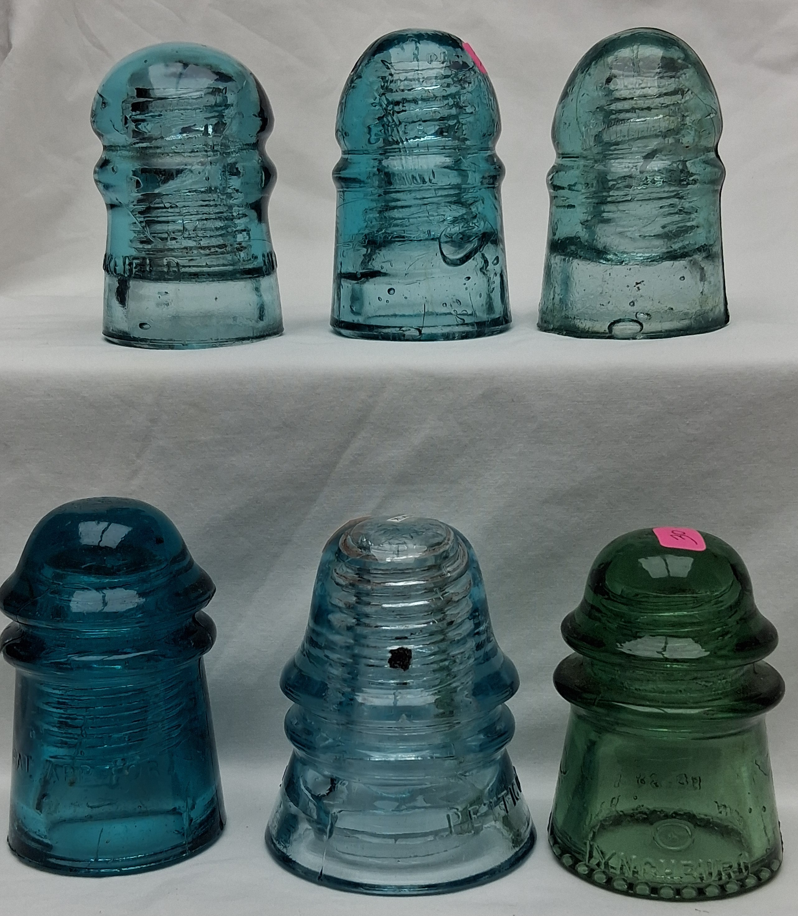 Back row left to right CD 126 ein 470 small dome sliver $10 CD 126.3 @ dings on dome side $18 CD 126.3 green Long green line circling through this one has 1 small base sliver $20 front row left to right CD 125 Pat APP FOR Great shape and color!! $95 CD 151 Rock in dome Great Shape and color!! $60 CD 122 ein 020 Lynchburg Great Shape! $30 Price plus shipping. First E-Mail PayPal to my e-mail address or check Thanks! Don |
