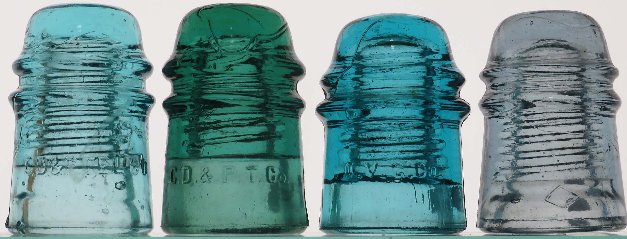Insulators as follows - actual postage additional: CD 121 (dome) D (skirt) C.D.& P. TEL CO -- light aqua with a milk streak -- VNM -- $12 (SOLD) CD 121 (skirt) C.D & P.T. Co.-- green shade -- VNM -- $12 (SOLD) CD 121 O.V.G. Co. -- nice blue -- just a tiny base flake -- $15 CD 121 "Diamond" -- steel blue -- VNM -- $15 |