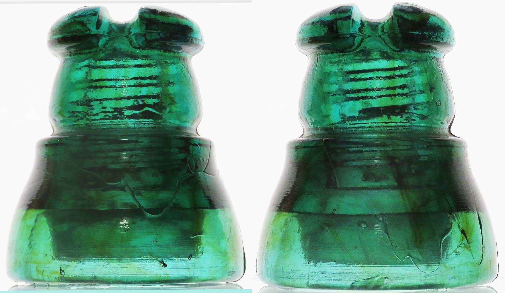 CD 210 (ear) POSTAL -- aqua packed with amber swirls -- some flaking at the sharp mold line over base edge inside the outer skirt -- $45 plus actual postage.