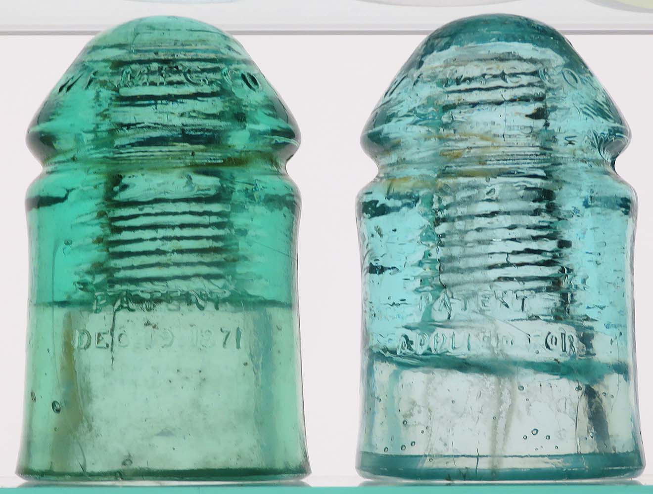 Insulators as follows - actual postage additional: CD 163.4 (dome) W.E. MFG.CO. // W.U. (skirt) PATENT / DEC. 19.1871 -- great light green -- VNM with just a wire rub -- $45 CD 163.4 (dome) W.E. MFG.CO. // W.U. (skirt) PATENT / APPLIED FOR -- light aqua -- nice condition with just a flash-over mark on the front -- $25 (SOLD) |