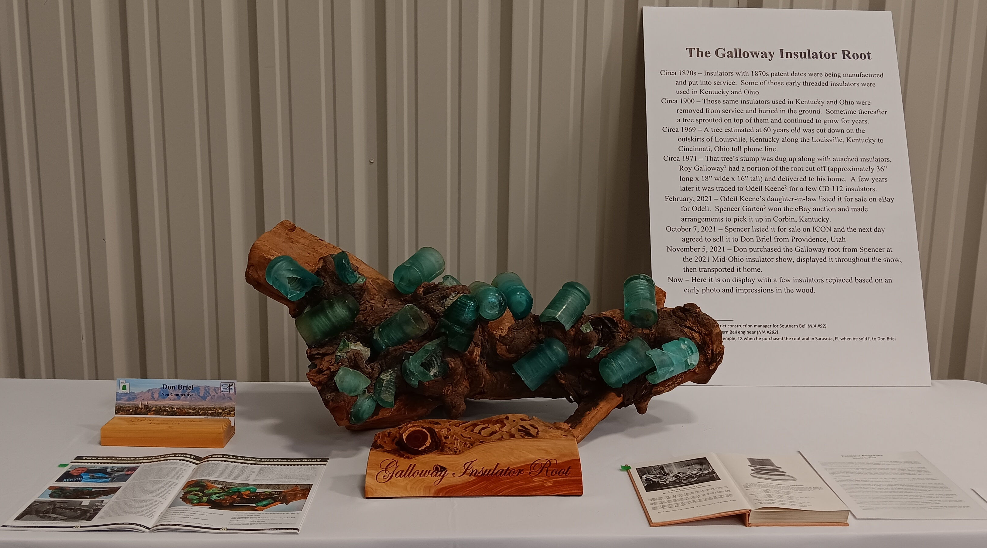 A photo of the Galloway Insulator Root displayed at the 2023 NIA National Show in Logan, Utah