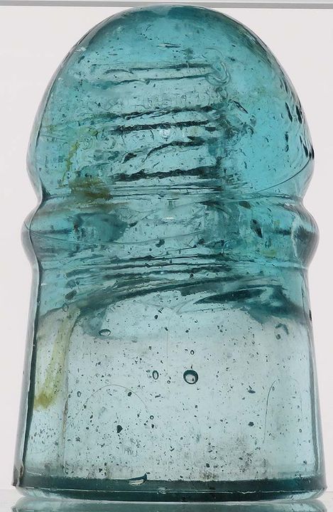 CD 126.3 (crown) 3 / W. BROOKFIELD / 55 FULTON ST. N.Y. // PAT FEB 22 1870 / " JAN 25 " / " 14 1879 -- light aqua with tons of tiny bubbles and snow as well as tiny amber -- VNM (just a couple tiny pecks) -- $45