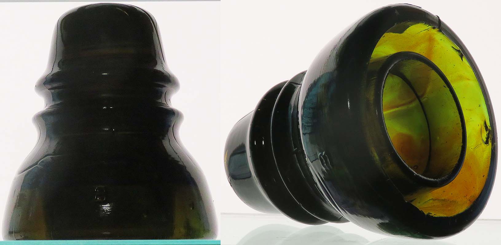 CD 152 B -- olive packed with dark amber swirls - nice shape with just the normal nibbling at the base inside ridge (MLOB) -- $60 plus actual postage