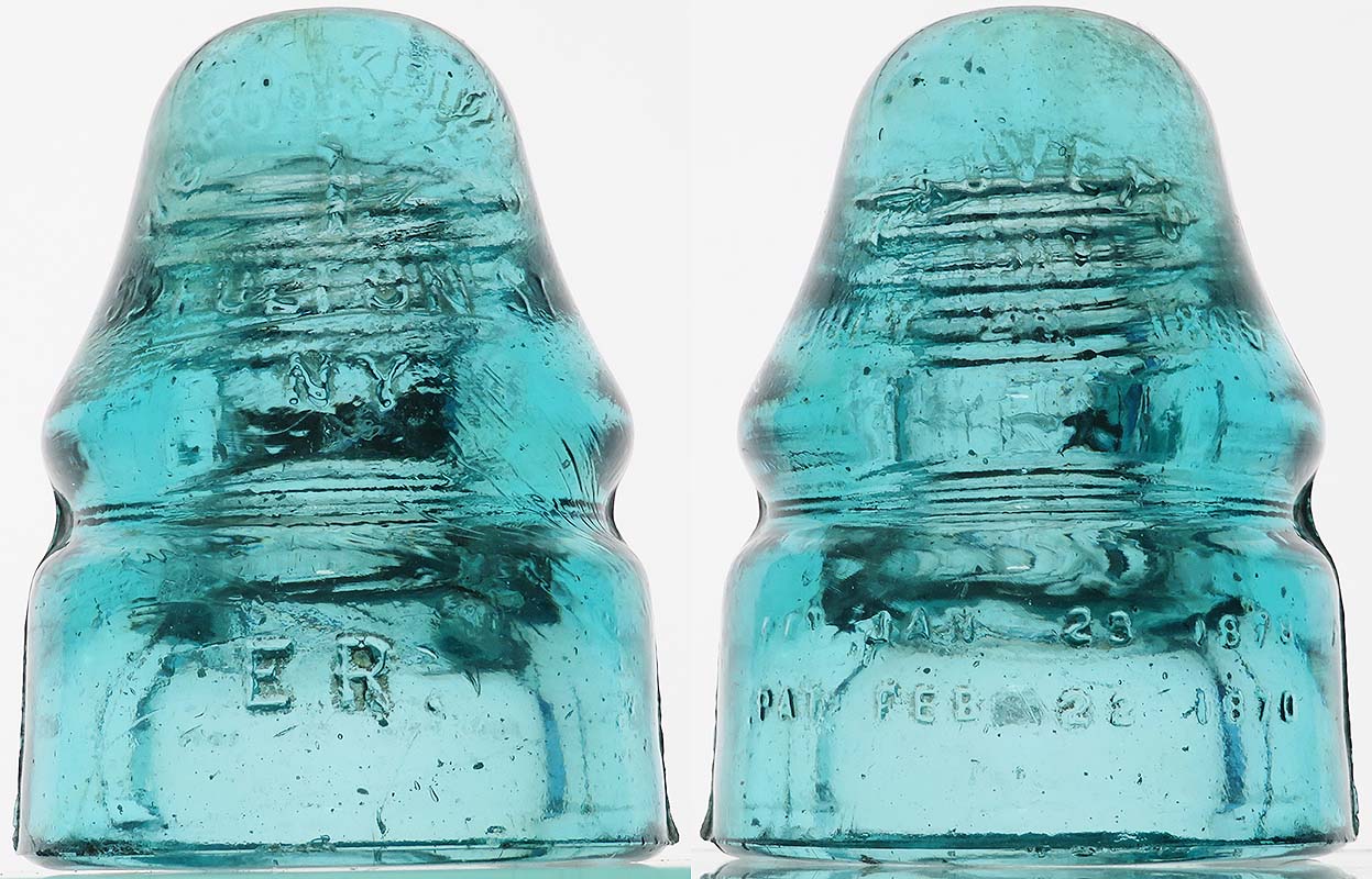 CD 133 (front crown arc) W. BROOKFIELD / "large 1" / 55 FULTON ST. / N.Y. (front skirt) E.R. (rear crown arc) CAUVET'S / PAT / JULY 25 1865 (rear skirt) PAT JAN 25 1870 / PAT FEB 22 1870 {MLOD} -- nice VNM condition -- $45 plus actual postage