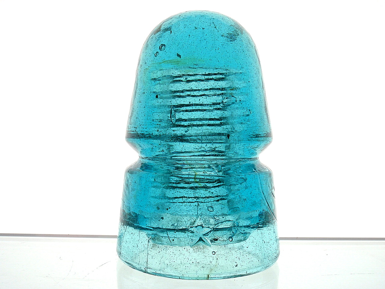 Brilliant blue loaded with fizz, snow and some milky olive swirls. Rear inner skirt shallow 1/4" flake is the only flaw! $ 60.00 includes shipping.