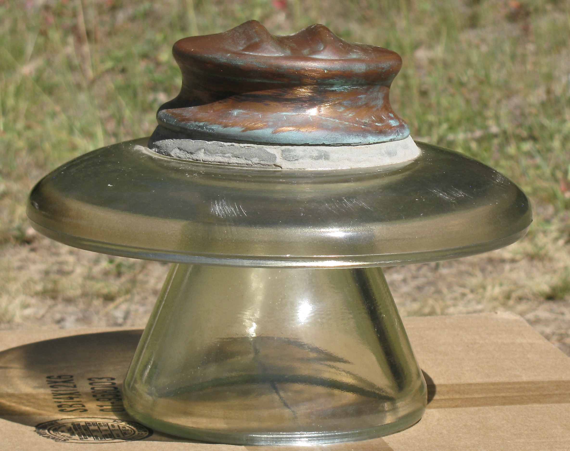 Here's an unusual and rarely offered CD 344.2 unembossed Pilkington multipart glass insulator in a beautiful light yellow olive green color with a cool copper top! These were made in UK for export to Australia but only a handful have made it to the USA. Measures 9" - 5 1/2" X 7 1/4". This one is in excellent condition with no chips or cracks and some light use marks (seen in pic). Easy VNM+. With some polishing these really produce an amazing shine for your collection! First email gets this cool Copper Top Multipart for only $385 plus shipping. Thanks! |