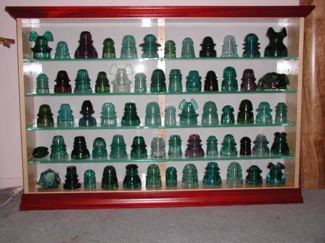 Hi everyone - this is actually Elaine posting this, as Mark is asleep on the couch. I wanted to take a minute to show off his work, because I'm very proud of him and the beautiful work he does. This is a picture of an unfinished piece that he made for displaying some of our insulators. It's made from clear maple with paduk crown moulding, and it's just stunning. I say it is unfinished because he plans to put 6 - 8 halogen pucks on the very top to show off pieces with bubbles and junk, rather than display them backlit. He is a very talented cabinetmaker, and has plans to build additional units, in varying sizes, for sale at this year's National in PA. I hope you enjoy this as much as I do! |