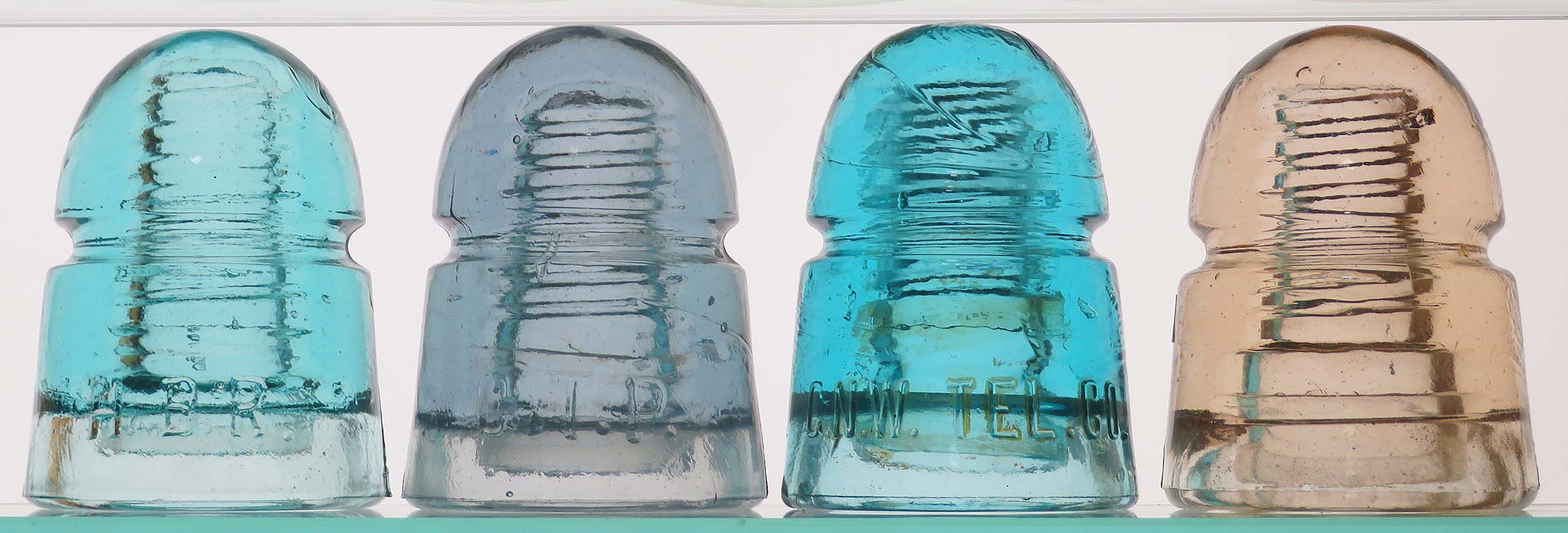 Insulators as follows - actual postage additional CD 145 H.B.R. "over blot out" -- VNM (tiny base flake) -- $18 (SOLD) CD 145 G.T.P. "over blot out" -- steel w/lavender hint -- thumbnail inner skirt chip on side -- $20 CD 145 G.N.W. TEL. CO. -- nice blue -- small skirt flake on side -- $8 (SOLD) CD 145 no embossing - great peach! -- VNM -- $35 |
