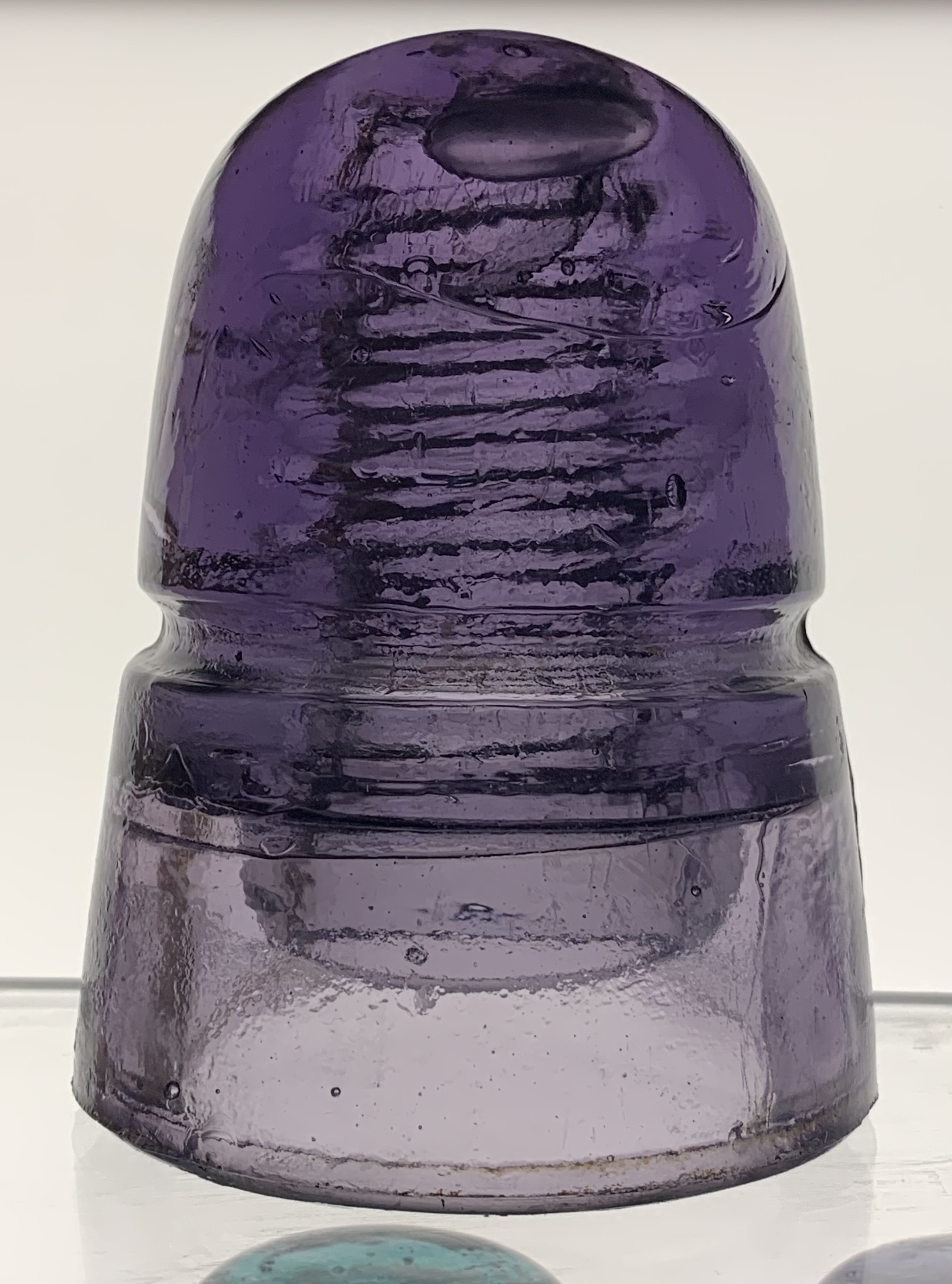 For sale, a dark purple Brookfield (CREB) beehive, as dark as I've ever owned, and likely as dark as they come. Embossing is good, but not as strong as they can be, but still readable. Even the "PAT/JAN 25 1870" on the rear dome is readable! Nice carbon bubble at the top of the dome. "3" is the mold number for those interested. Damage report: tiny flake on the left skirt at the base (see photo) and a tiny dome scuff above and to the left of the embossing to the left. Most people wouldn't notice either one. Otherwise, this piece is in the condition it left the factory. $525 shipped. PayPal F&F only please. *PENDING* |