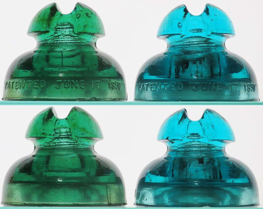 Insulators as follows - actual postage additional: CD 292 "PATENTED JUNE 17. 1890" -- great green with some cool snow -- flat base chip under "E. 17" and a some flaking on the glass that squeezed out of the mold around the base (typical for these) -- $125 CD 292 "PATENTED JUNE 17. 1890" -- nice blue shade -- chip at the ear top and a small flake above the groove - $30 (SOLD) |