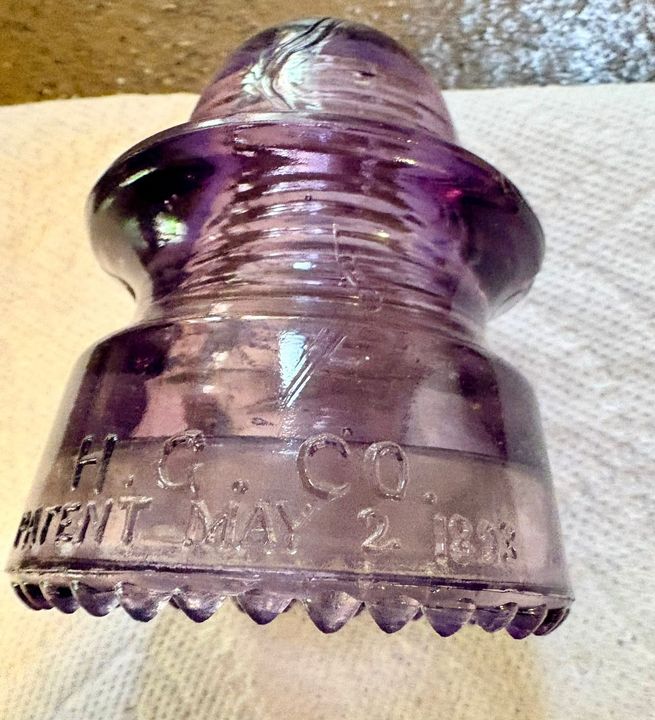 A lady recently posted pictures of a small group of insulators she's had sitting on top of her kitchen cabinets in a group on Facebook. In the group was this purple Transition mold CD 164 H.G.Co. in great condition. She had no idea how rare and valuable this insulator was. Many collectors gave her an estimate on the value and someone made her an offer and bought it. I just wanted to share her story on how it was found… Many many many years ago back in the 1970's a thirteen year old boy climbed a pole and got the insulator down to impress her. She lived in Riddle, Oregon at the time and her friend lived very far out of town in a cabin. Her brother thought she was cute and was trying to impress her. The old lines were between the road and railroad tracks. It was a wonderful time I remember fondly she said. |