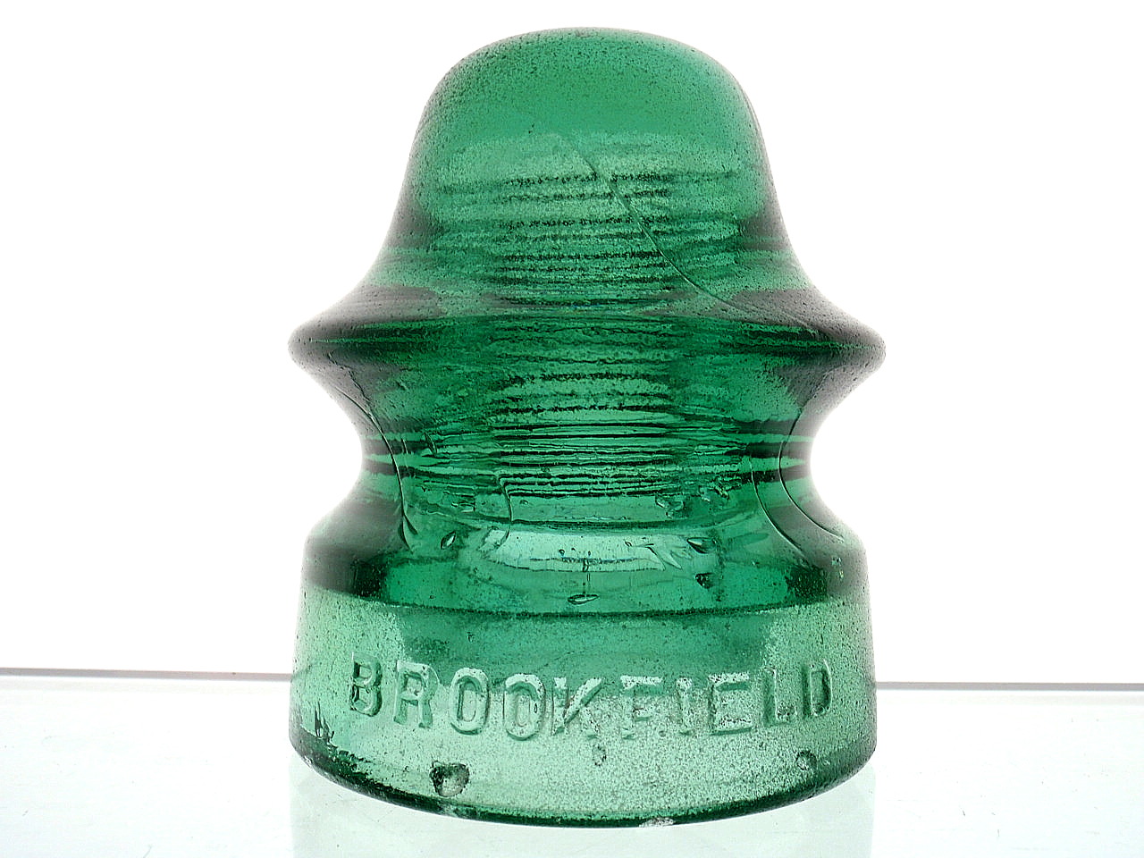 Interesting crude pebbly surface on this green CD 164 BROOKFIELD R- NEW YORK made in the confiscated B.G.M.CO. molds. Factory MINT condition. Tiny open side base bubble is the only "flaw"!! $ 55.00 includes shipping.