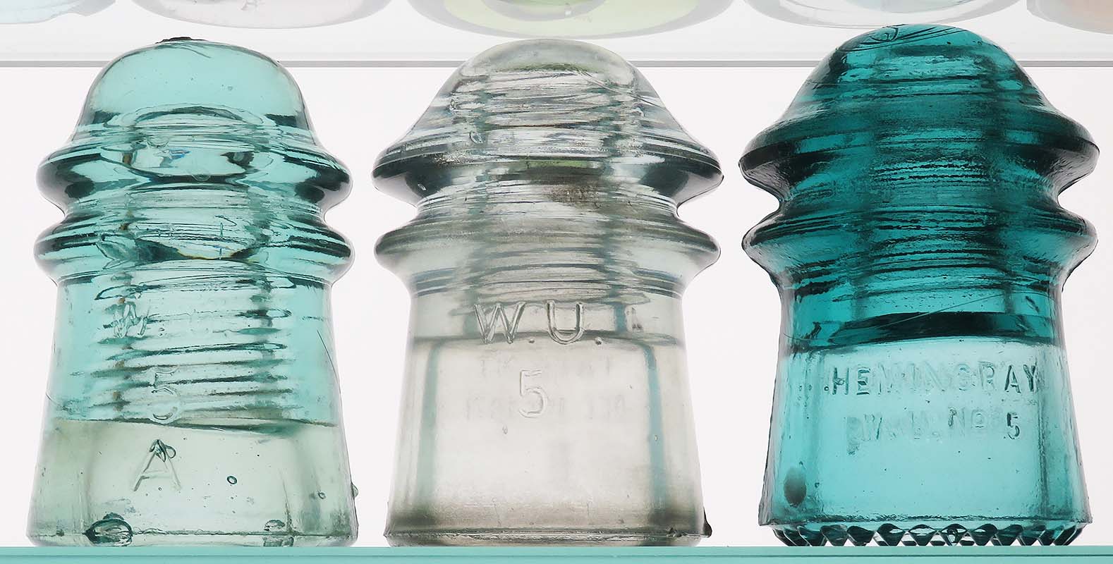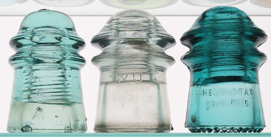 Insulators as follows - actual postage additional: CD 125 W.U. / 5 / A // PATENT / DEC.19. 1871 -- light green aqua -- VNM (tiny mold/flaw/peck on upper wire groove) -- $15 CD 125 W.U. / 5 // PATENT / DEC.19. 1871 / B -- nice off clear -- VNM (could use a little cleaning) -- $30 (SOLD) CD 125 HEMINGRAY / W.U. No 5 // PATENT / MAY 2 1893 - SDP - 3 partially flaked drips - $10 |