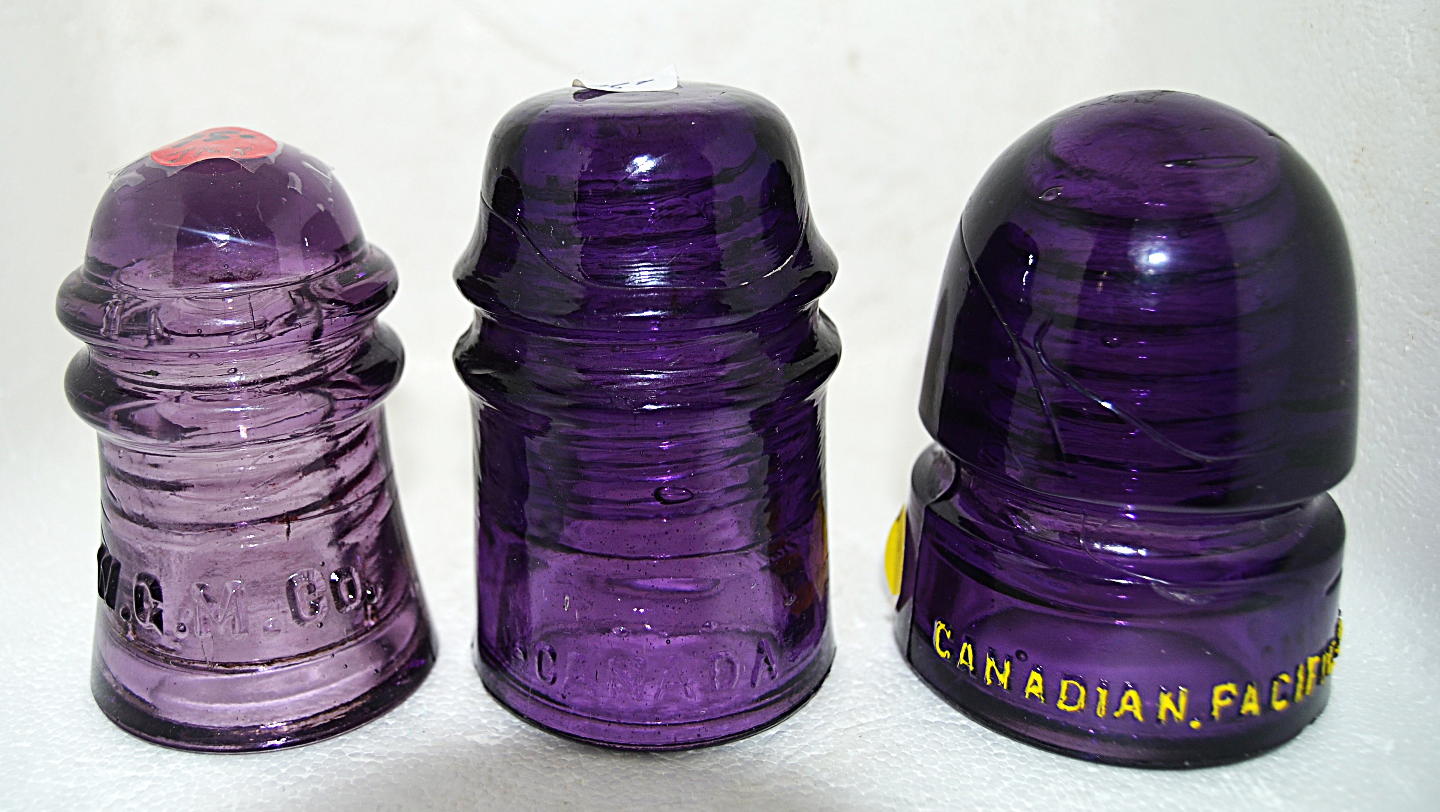 Left CD 106 embossed W.G.M.CO. - See no flaws $70 --- CD 121 Embossed MCanada with blotted out B.L.T. - Very small open air bubble on base $75 --- CD 143 embossed Canadian Pacific RY CO. - Small open air bubble on base with slight sliver. $100 - Postage added on each order. |