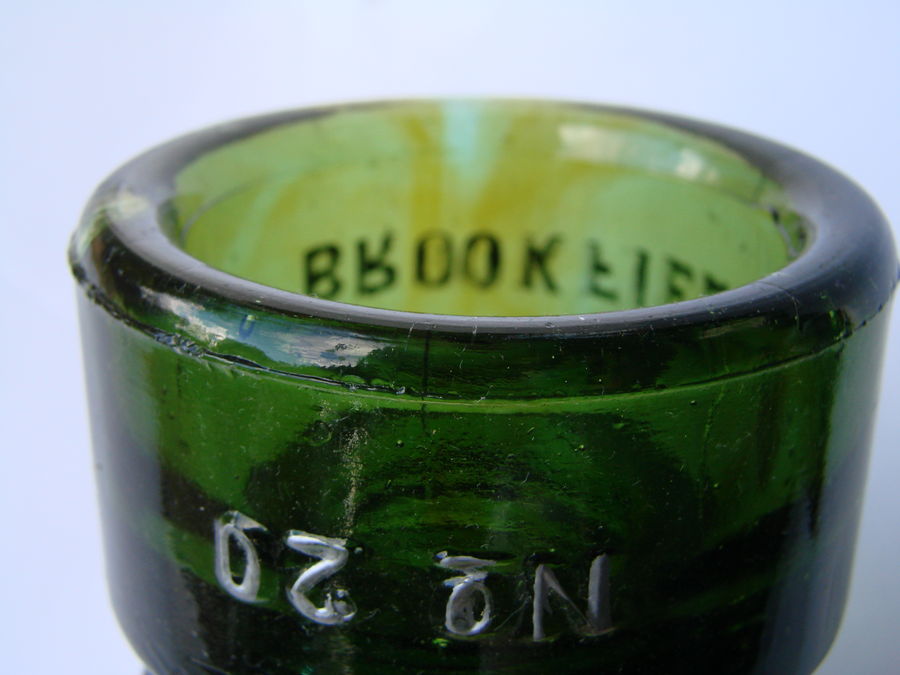 Beautiful colored piece. Olive Green with Amber swirling . CD 133 ( dome top ) 0 { front skirt } BROOKFIELD {rear skirt } No 20 . $265. + postage .