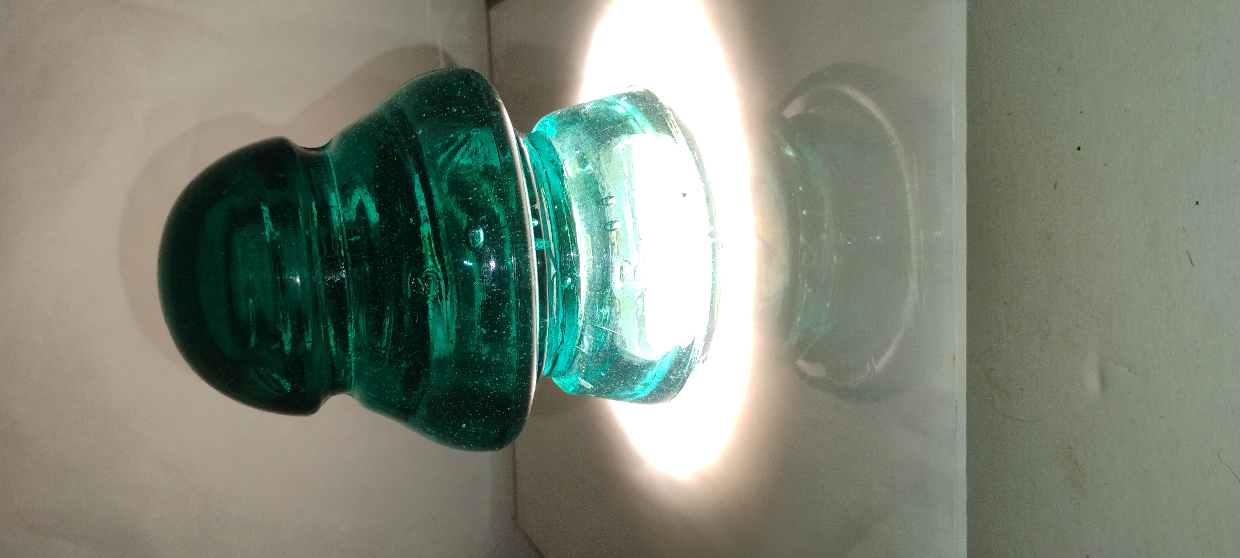 Two piece transposition, color is green aqua, no defects, embossed with the letter B on top and bottom. Price is $35 plus shipping of $12