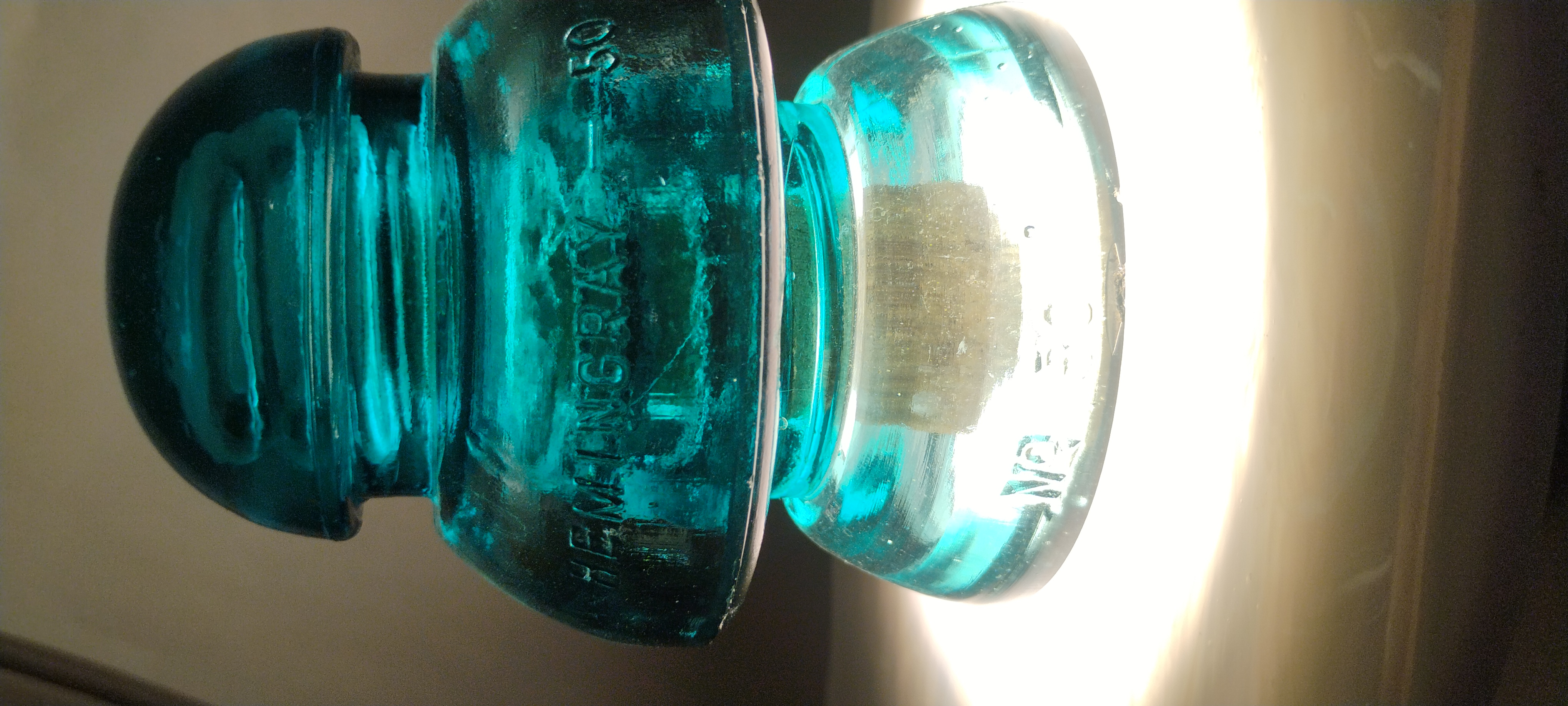 Hemingray two piece transposition, hemingray blue, no defects, embossed top Hemingray-50, bottom No. 50. $45 plus $12 shipping