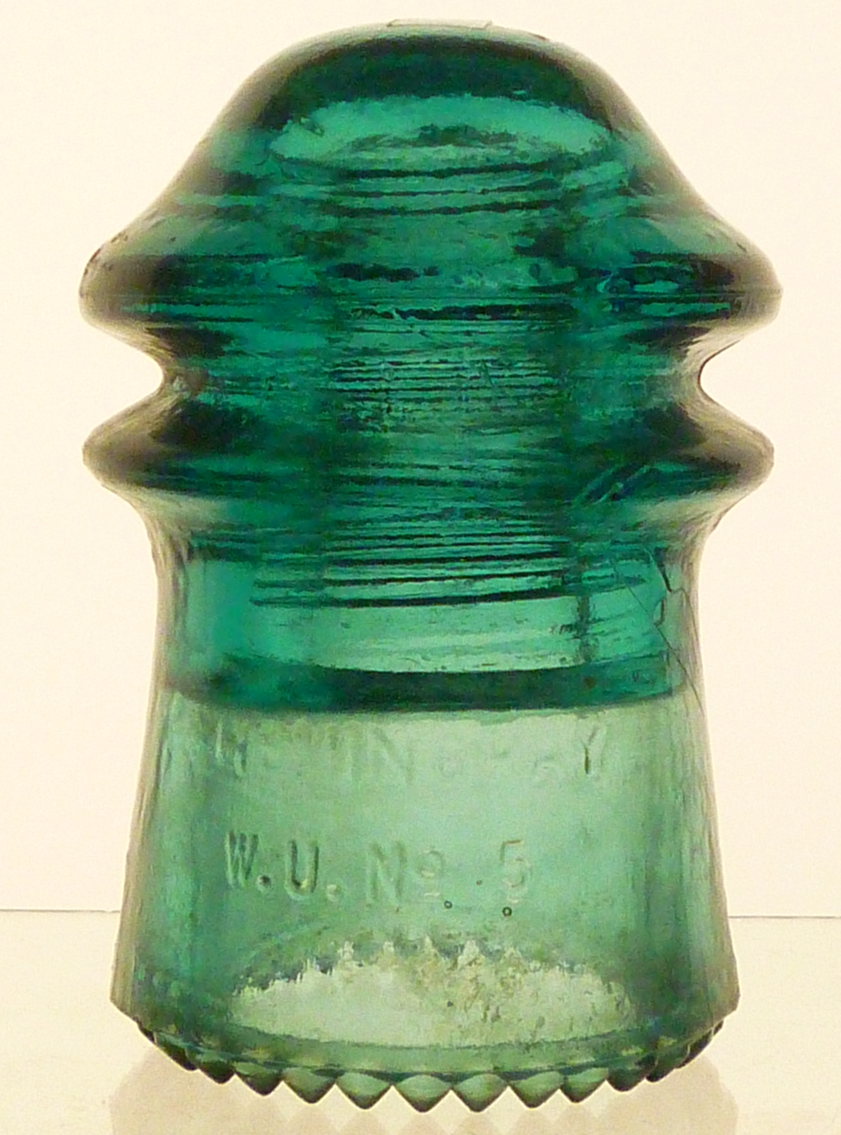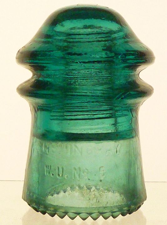 CD125. HEMINGRAY / W.U. NO 5 Back: PATENTED / MAY 2 1893 BLUE AQUA. Sharp drip points. All intact. Nice overall condition. No distractions to note.