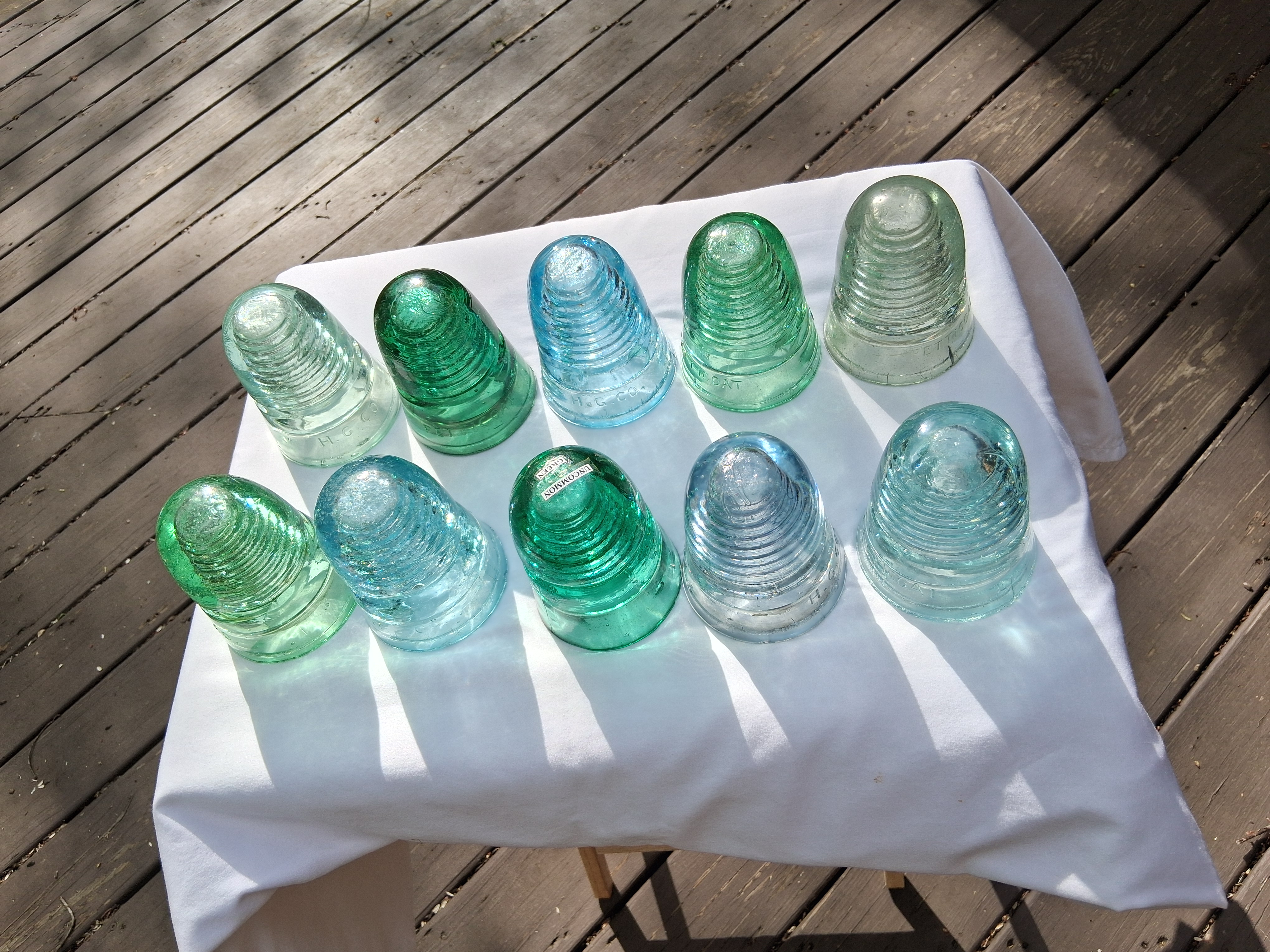 See Bottom Picture Back Row RIGHT TO LEFT!!! IEN 100 1/2 ling fracture line in skirt under petticoat $8 IEN 120 Letter G Great Green! Good shape! $25 SOLD IEN 130 Letter J Beautiful blue $90 SOLD IEN 140 Letter M 3 Bottom grill Marks $120 IEN 100 Good Shape! $10 Front Row RIGHT TO LEFT!!! EIN 140 M Mold Various small chips 1/2 surface scrape $20 EIN 130 J Mold Inner skirt flake Inside house has lavender shade under light. Outside it is washed out $120 EIN 090 tiny base chipping Large Bubble on side and weird green color Tiny marks on surface. $50 Ein 120 E Mold 2 base flakes and 2 side bb dings $70 EIN 120 E Mold Tiny outside of edge Base Flake. One tiny wire rime flake Great Green $30 Price plus shipping. First E-Mail PayPal to my E-Mail address. Or check Thanks! Don |
