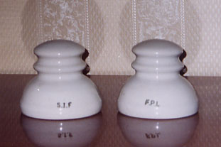 Telephone insulators from FPL factory in northern Italy. A very rare type. S.I.F. is the name of the telephone co. that used these insulators