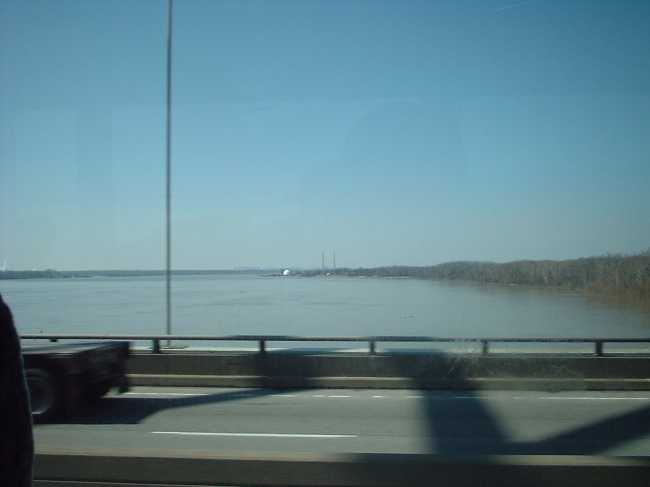 Smokestacks off in the distance over the Ohio River. ( taken from a bus on the interstate)