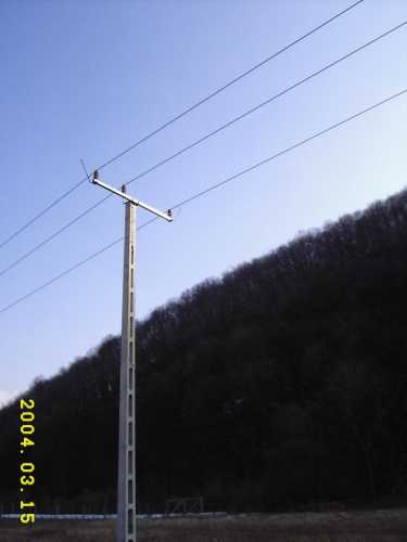 It is a new 20 kV line. It use concrete pole, epoxy Insulators and (!) insulated wires. It has protect horn because of the insulator broking wire less. Here use double Insulators to protection, but this technology is cheaper.
