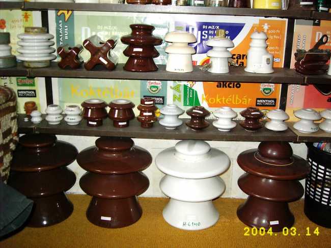 The "Big Deltas" the biggest pintype Hungarians for 35 kV. They are a little bit old. The others are Hungarian, Sweden Insulators. And there is my smallest Hungarian Delta for 6 kV which I got from Milkos
