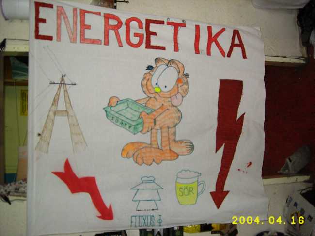 It is my Flag, which I will use for the emulator party at today night. The college's department's will emulate for the cup. I am in the "ENERGETIKA" High Current (power) department team. We will do lot of fun challenges. The Grafield is the team's cabala, who very like the beer. Lot of students will flood the street, and the parties will be in the hostel. The emulator will be 24 hour long, from 6:00 pm to 6:00 pm. Here it the time of their yellow grasshopper. It is a tram with full of students, and everybody began hop, and the tram take sinus wave way.... It is the biggest party of the college. |