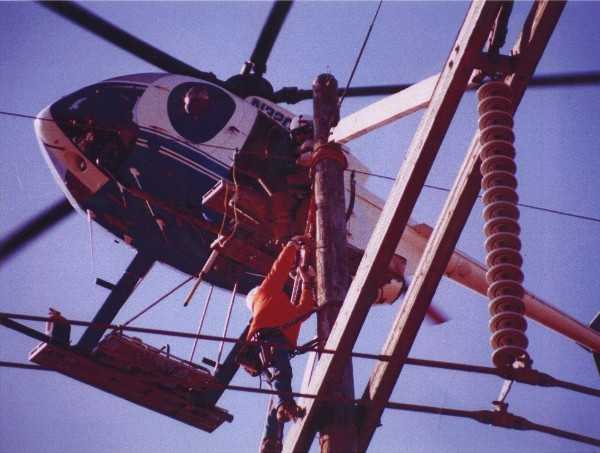 "Knee brace replacement on energized 345 kV line in Midwest."