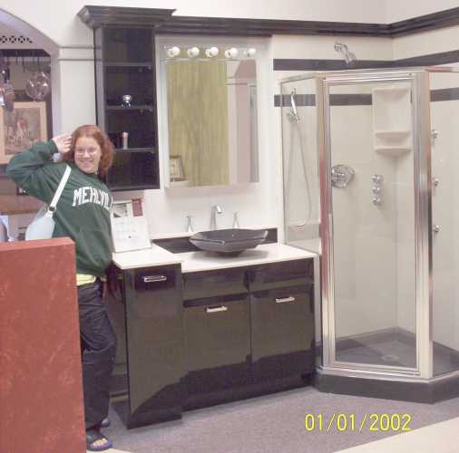Well there's the bath set i picked. My girlfriends posing, we made the people there mad due to us trying everything out then getting in the shower and complaining that it was too small. They got in a better mood once we bought it.