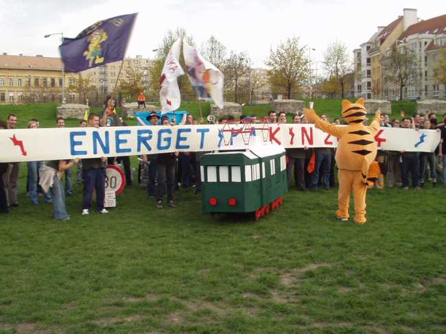 Our team with the locomotive and Garfield, our cabala. The jury gave points for it, for flags, and sings.