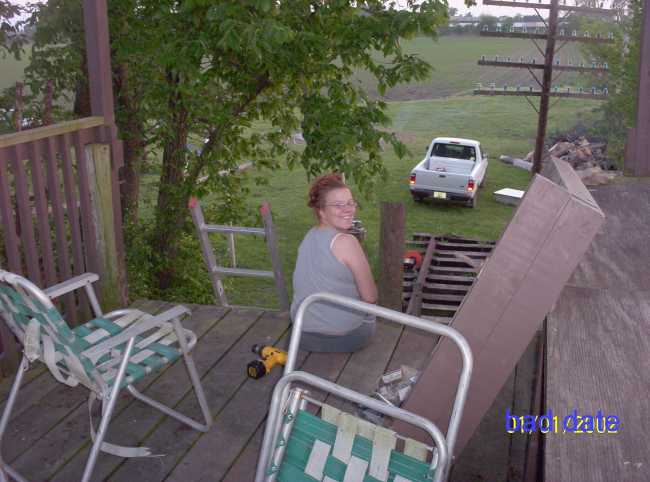 This is Melissa, my girlfriend who now collects "pretty" insulators. I didn't like getting up or down from the deck and she did no problem.