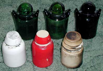 Here's some of the latest insulators I've obtained. In the front row are three Cordeaux pieces I bought off eBay. The red ones are particularly nice. At the back are three glass gingerbreads I got from a recent hunt in France [id=90002447]