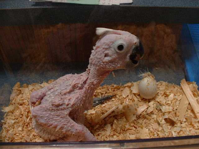 A full view of the little critter, with an unhatched egg for size comparison. Hard to believe he grew that size in just four weeks, isn't it? Stay tuned for updates!