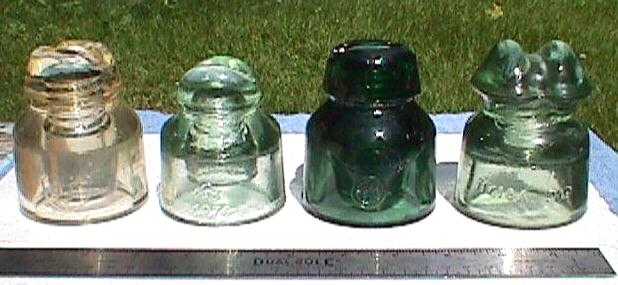 Four more Russian (or Soviet Union) insulators. Left to right CD 570: peach color "KV/JL/T" inside a shield outline; 1976 Lviv with an insulator symbol; CD 570"EKO" inside a circle, and a Lviv CD 522.5 HC18A (NS18A) 219. Close-ups will follow. Apparently the EKO and the KV/JL/T CD 570 insulators are from Estonia, refer to [id=274044225] Klaas Vabrik / Johan Lorup (Johan Lorup Glass Factory) / Tarbeklaas which may mean Glass Stone (?) [IFONA CD 570, ???, 522.5] |