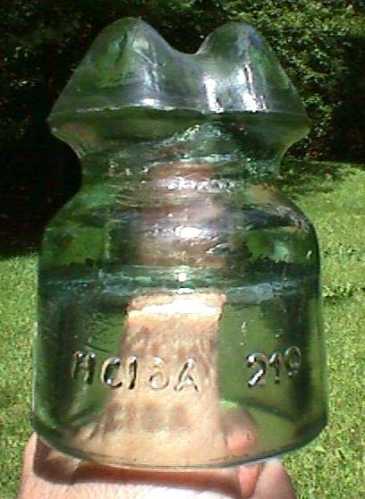 This CD 522.5 has HC18 A (Cyrillic NS18A) and the number 219 embossed. This appears to be a product of the Lviv Insulator Company in the Ukraine, their product lineup is here: http://www.energyglass.com.ua/en/?topic=nomenclature the same page in Ukrainian is here: http://www.energyglass.com.ua/ua/?topic=nomenclature You may have to "click and drag" the entire URL if it doesn't appear properly here. [IFONA CD 522.5] |
