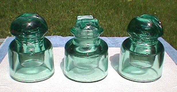 On the left and right, EIV DC-3, CD 576s, and in the center, EIV DC-3 CD 532, with a gray plastic threaded insert. Usually these insulators are affixed on their iron pins with some form of plaster or cement, the CD 532 can be screwed onto its pin [IFONA CD 576 532] |
