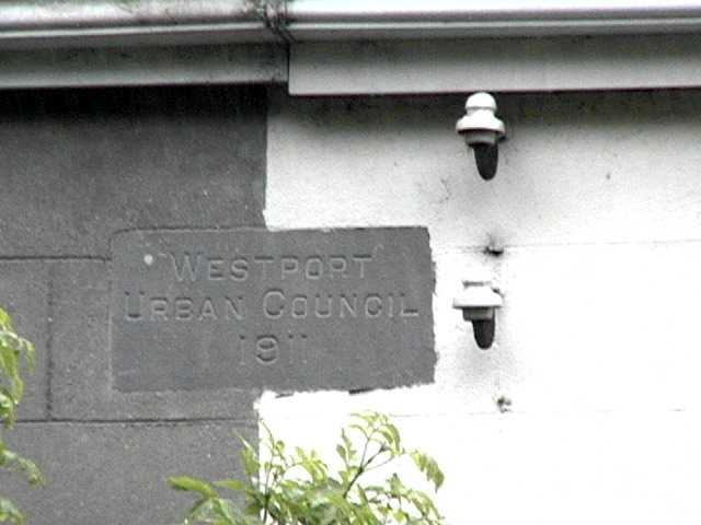 This is the first of several pictures of abandoned insulators still mounted on the side of houses. Note the 1911 date engraved on the granite block!
