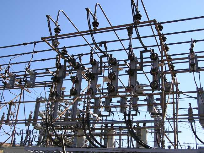 A busy assortment of 12KV switch gear that includes SPDT solid blade disc switches, liquid filled transformer fuses and potheads.